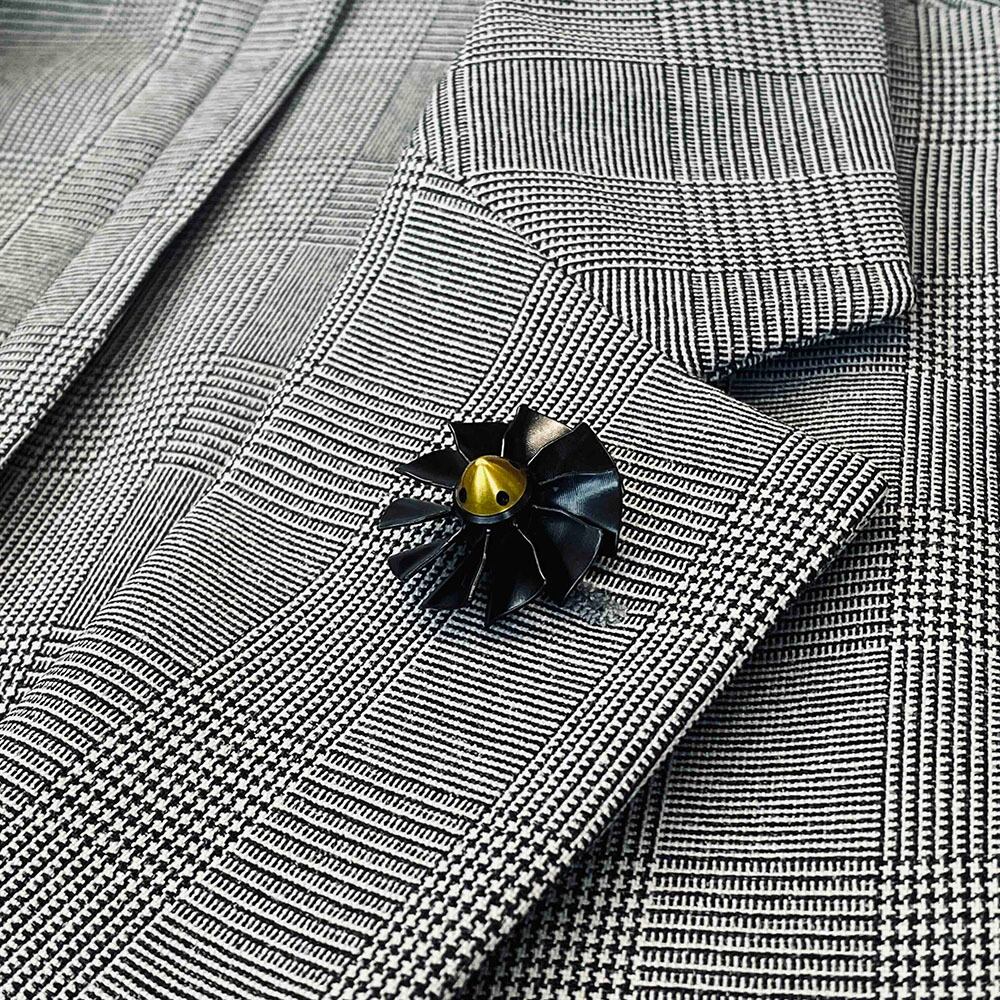お手入れには柔らかい布で優しく拭いてください。水や化学薬品には注意し、過度な力を加えないようにしてください。裏のピン部分は一体加工のため、硬い生地厚い生地の貫通はお控えください。ピンが折れる原因になります。